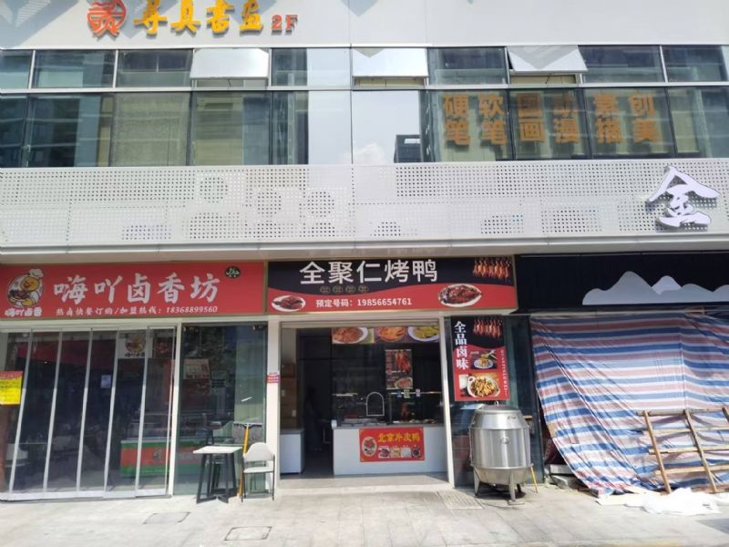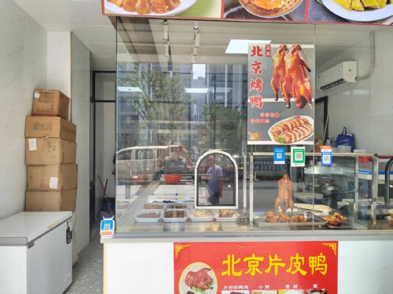 一、周围环境: 本店位于杭州临平区新洲坊夜市菜市场7号《全聚仁烤鸭》 这里交通便利,门口停车方便。,小区环绕,企业