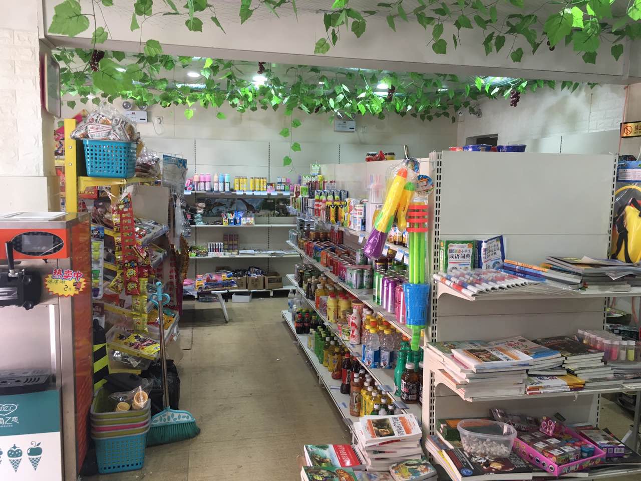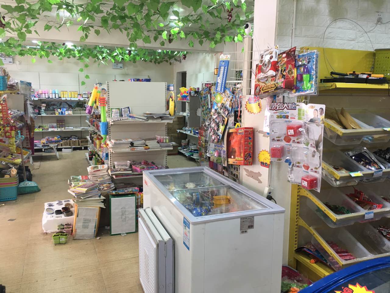 店铺介绍:店内经营文具,零食,饮料,也可以卖香烟。学生买文具,买零食,买玩具,生意稳定,火爆!